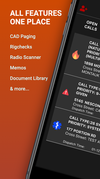 - ALERTS: รับการแจ้งเตือนข้อมูล CAD ชัดเจนผ่านการแจ้งเตือนแบบ push และถอดรหัสข้อมูลบนหน้า Alarms